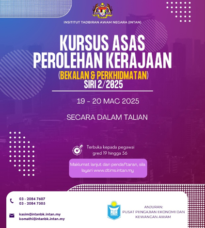 UPM SERDANG, 20 March 2025 – The Basic Course on Government Procurement (Supply and Services) organized by the National Institute of Public Administration (INTAN) Bukit Kiara, Kuala Lumpur has been successfully implemented online for two (2) days, starting on 19 March and ending on 20 March 2025. In conjunction with the month of Ramadan, the course mode has been changed from face-to-face training to online training.