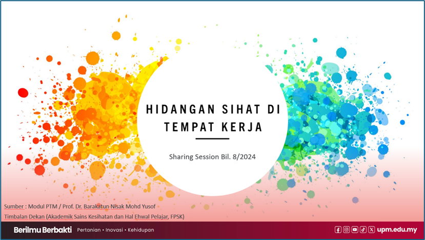 UPM Serdang, 21 November 2024 - The Sharing Session Program or knowledge sharing is a monthly program organized by the UPM Internal Audit Division. This program aims to improve the quality of knowledge sharing between members through the dissemination of existing knowledge, skills, experience, and pedagogical practices in an organization.